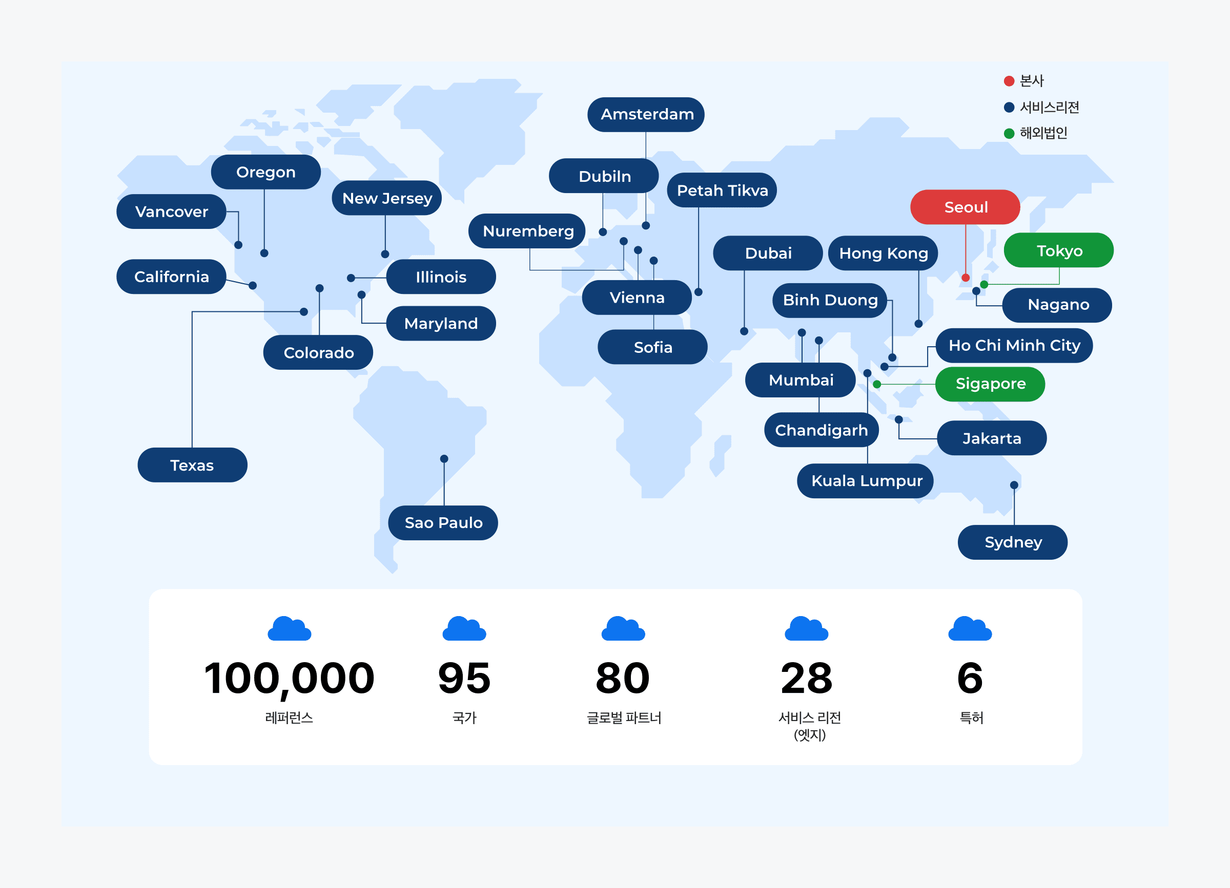 전 세계 18개 국가, 28개 지역에 500 세트 이상의 Edge를 보유하고 있어 언제 어디서든 보호대상에 최적화된 인프라 환경을 제공합니다.