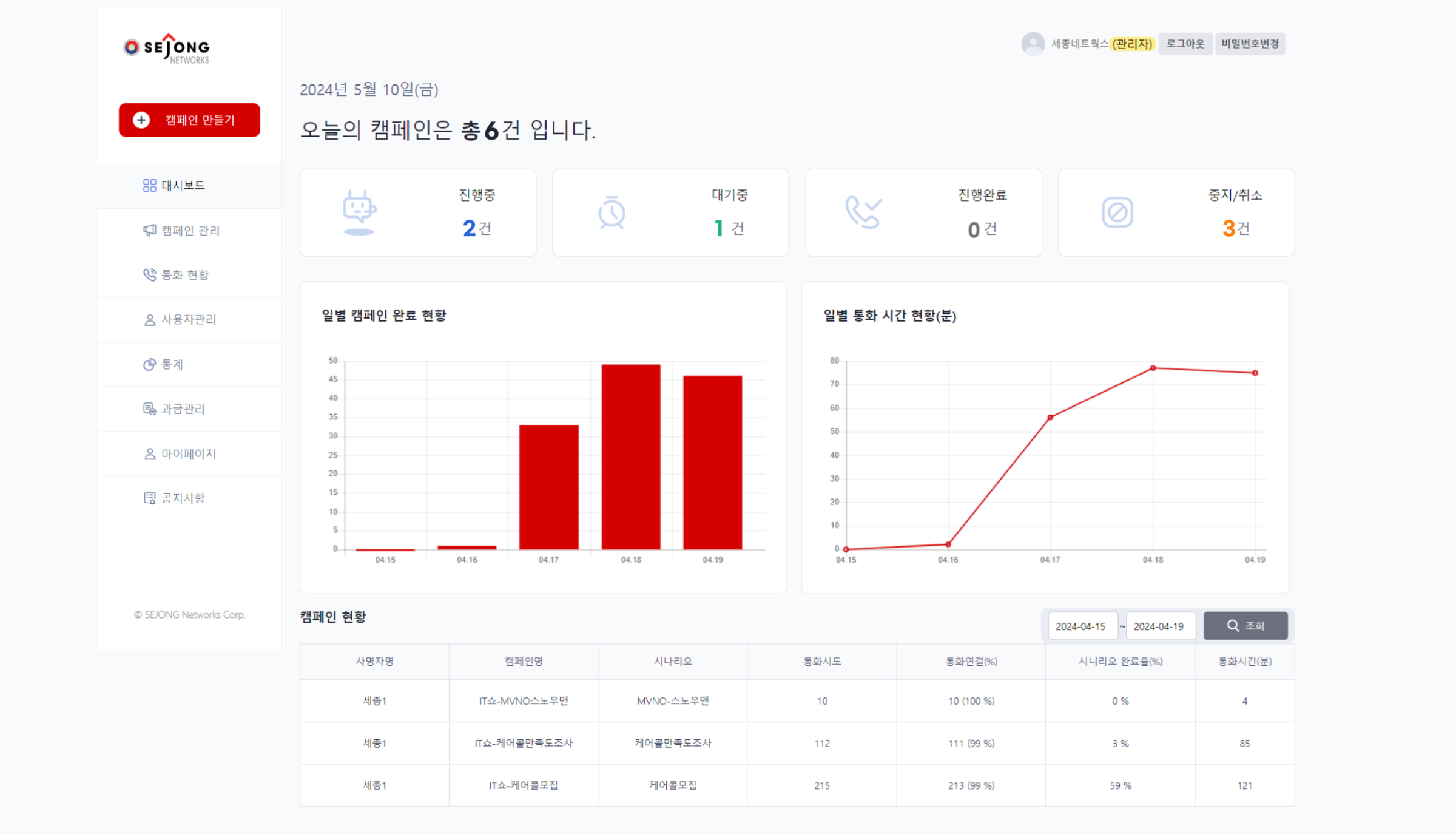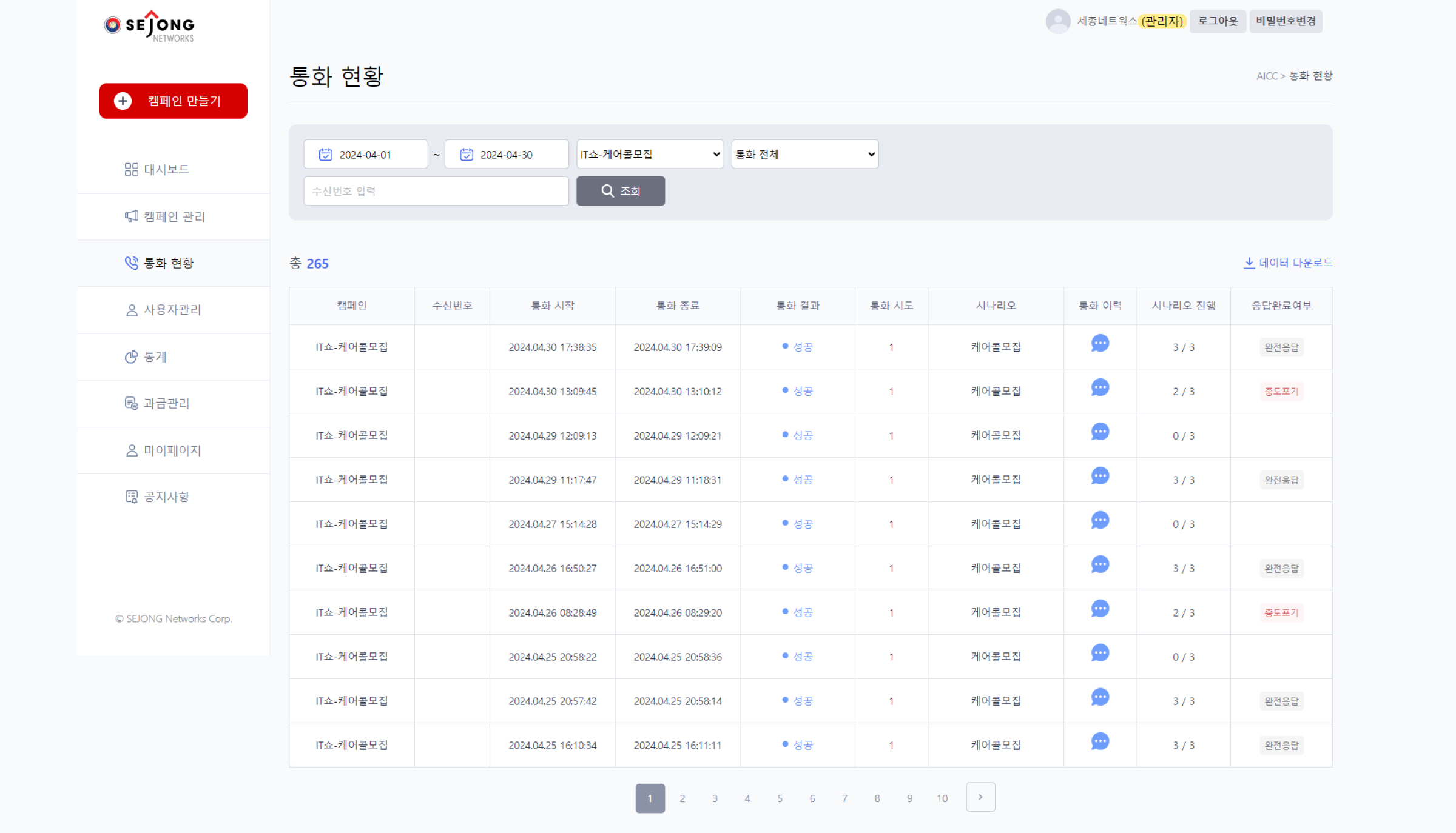 통화 캠페인 관리