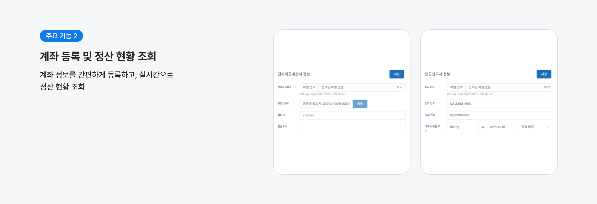 정산 등록 •전자세금계산서 등록 템플릿 제공